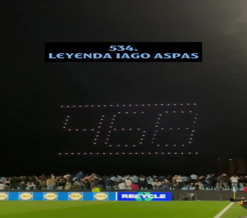 阿斯帕斯为塞尔塔出场534次队史最多,俱乐部无人机表演致敬