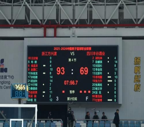 最后一节,赵嘉仁接球三分命中,李金效上篮得到2分。吴骁挡拆顺下完成得分,赵岩昊远投应声入网。随后双方换上全华班,李玮颢双手扣篮,赵嘉仁先是跳投三分命中,随后接到侯孟泽传球完成灌篮。此后两队分差始终保持在20分以上,比赛失去悬念,最终浙江方兴渡主场以93-69战胜四川丰谷酒业。