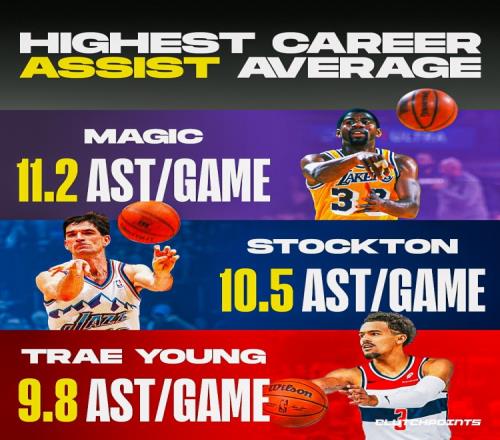 魔术师生涯场均助攻11.19次、斯托克顿为10.51次、特雷·杨为9.81次。