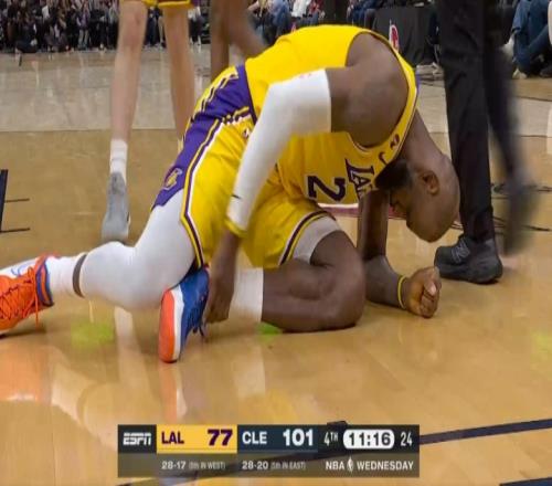 还好没大事!詹姆斯落地踩到球哥的脚倒地捂着左脚踝!